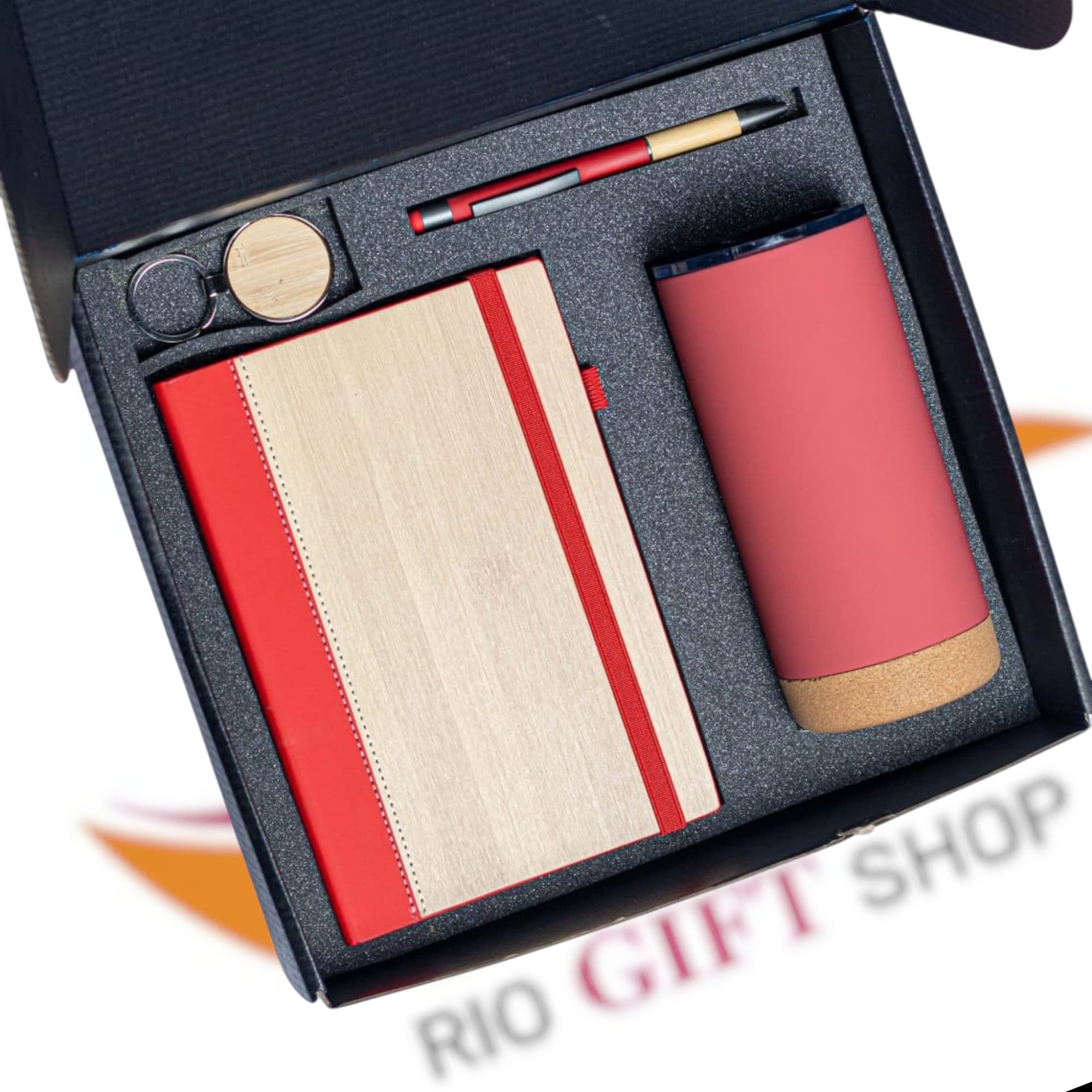 Combining functionality with eco-conscious materials, the set ensures your brand communicates both style and responsibility. The thermal flask keeps beverages at the perfect temperature, the notebook inspires organized thoughts, the bamboo pen adds a touch of sophistication, and the wooden keyholder completes the ensemble. Ideal for corporate gifting, events, or recognition programs, this red-themed gift set ensures your brand leaves a lasting impression while promoting a greener, more responsible lifestyle.