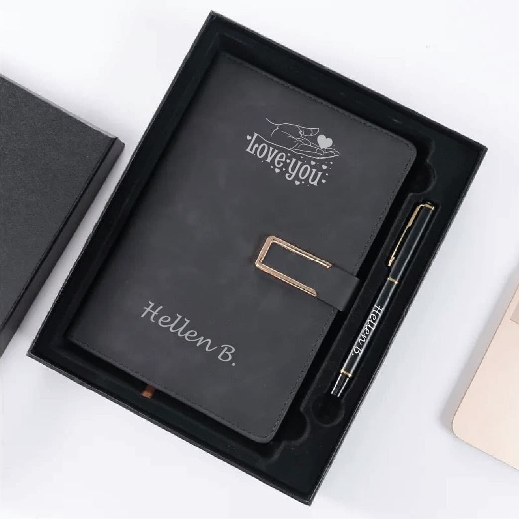 Customization Options: Engrave your company logo, recipient’s name, or a special message on both the notebook and pen, creating a unique and meaningful gift.