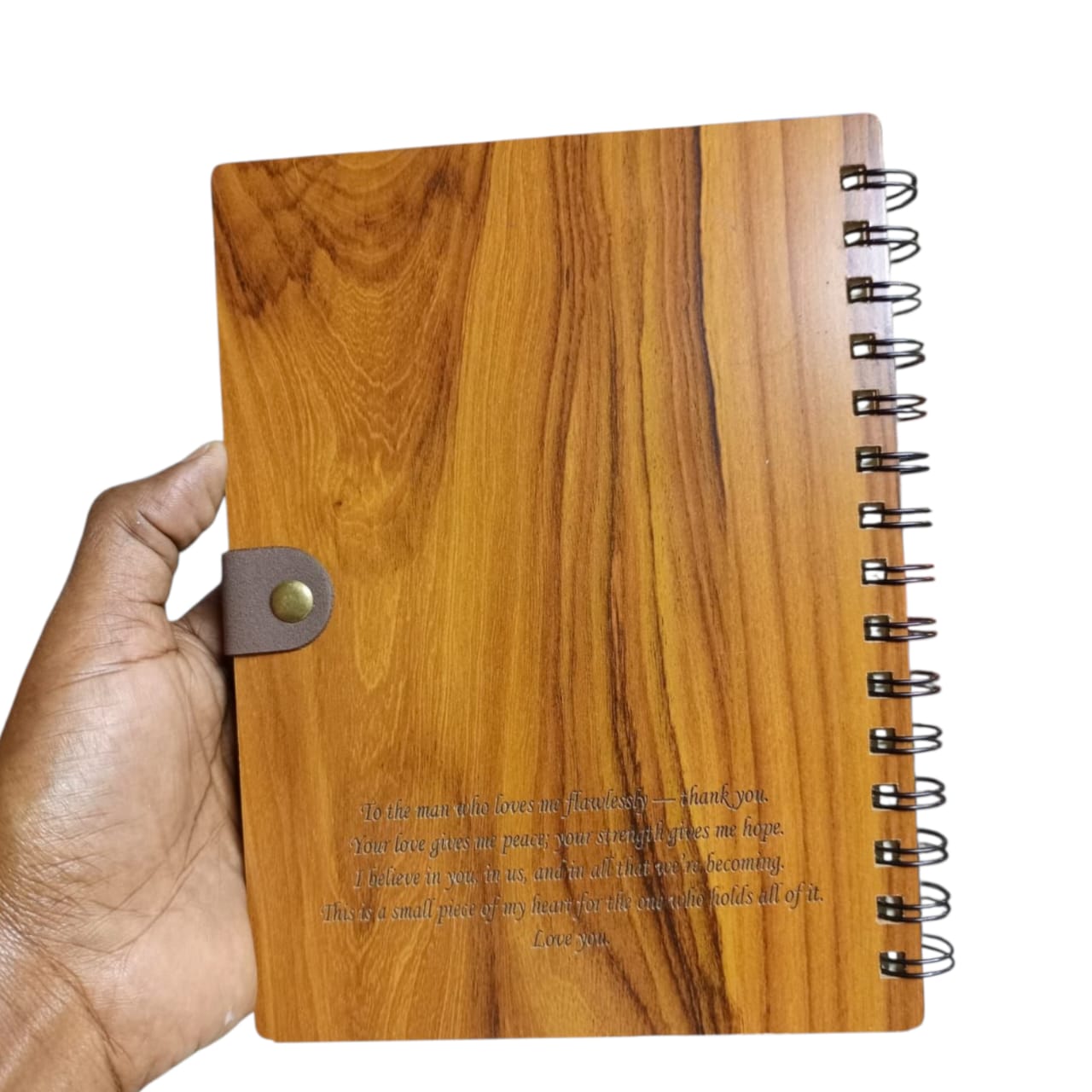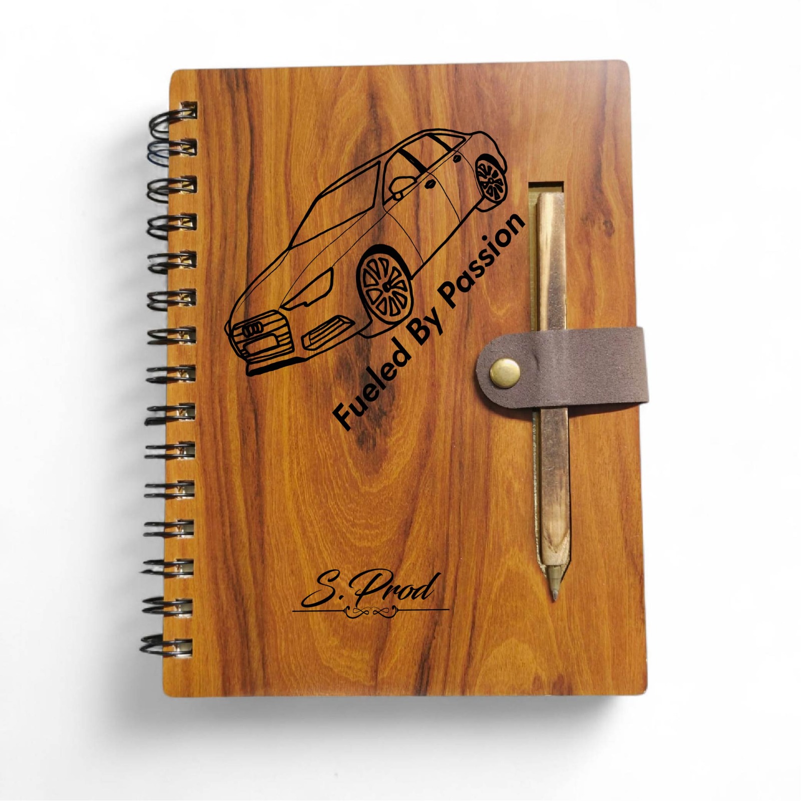 Signature Wood-Cover Notebook with built-in pen holder, custom engraved with your company logo. Durable, classy, ideal for corporate gifting to clients or staff. Keeps your brand visible each day.